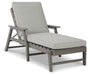 It’s the dawn of a new day for gray. Embrace the style trend with this outdoor chaise lounge chair. Crafted of MEGA-TUFF® HDPE material, it combines the exceptional durability and weather resistance you need with the “wood look” you love. This comfortably cushioned chaise with an adjustable lay-flat backrest takes outdoor living to a whole new level. Rest assured, the thick seat and back cushions are wrapped in our exclusive Nuvella® high-performance fabric that’s fade-resistant, stain-resistant and a breeze to clean.