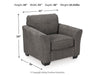 Slate colored menswear chenille makes this chair a show stopping sight and comfortable resting place. Flared arms soften the look and invite you to take a seat. Plush and roomy, this is the perfect neutral chair.