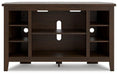 With its replicated burnt umber rustic wood grain and minimalist charm, this corner TV stand is right in tune with your relaxed approach to high style. Beautifully shaped to nestle into any corner, it’s well equipped with a flexible open-concept design and cutouts for wire management that enhance the clean-lined aesthetic. What really turns up the heat: an electric fireplace insert with faux firebrick surround that operates with or without infrared heat. The fireplace includes a multi-flame feature, 7-level temperature setting, five brightness levels and an LED glowing embers effect.