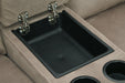 Strike a balance between the indulgent comfort you crave and the cool aesthetic you long for with this reclining sectional with power. Offering the cool look of weathered leather, the feel-good slate-tone upholstery takes neutral to new heights. Simply chic divided back tailoring, jumbo stitching and a USB port in the one-touch power control are among the finer details that make all the difference.
