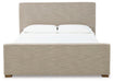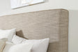 Taking an organic approach to a curated bedroom aesthetic, this warmly neutral California king upholstered bed has a natural appeal. The clean-lined design is highlighted with an effortlessly beautiful linen-like upholstery. With its aura of casual refinement, this piece elevates the everyday in your restful retreat.