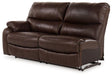 Bring home ultimate comfort with this power reclining sectional. Along with power positioning at the push of a button, its deep seating, plush cushions and pillow top arms ensure plenty of relaxation. The strikingly modern profile is wrapped in decadently soft leather and faux leather upholstery for a luxurious feel. A convenient USB charging port on the power control keeps you connected. Use the sectional's center console to keep drinks within arm's reach and to store remote controls and other necessities.