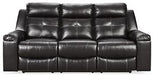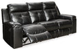 You don’t just want to recline. You want to recline in high design. Wrapped in a fabulous black faux leather upholstery, this reclining sofa with 42" high back is everything you long for—and then some. Ultra clean lines, subtle curves and sumptuous comfort make it a sight for sore eyes and tired muscles. Here’s the showstopper: ambient blue LED lighting along the sofa base for a movie theater experience enjoyed from the convenience of home.