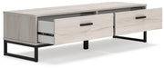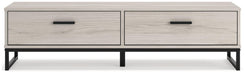 Spruce up your entryway or mudroom with this streamlined storage bench. Two spacious drawers are your new go-to spot for hats, scarves and outdoor gear. Contemporary handles and sled-style legs with a dark pewter-tone finish emphasize the sleek, contemporary profile.