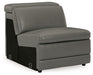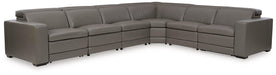 Truly putting high design into recline, this power reclining sectional with gray leather match upholstery proves that just because you’re a recliner doesn’t mean you have to look like one. Deceptively beautiful, its ultra clean-lined aesthetic is as cool and contemporary as they come. Low-profile back has a super swank look. When you need more support for your head and neck, the press of a button engages the Easy View™ power adjustable headrest, designed to let you lean back and still have a primo view of the TV. The zero wall design requires minimal space between wall and chair back, and indulgent pillow top seating gives an added layer of comfort.